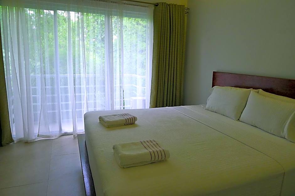 Largest air-conditioned room with a double bed and 2 single beds features a balcony with garden views and flat-screen cable TV. Private bathroom comes with a hot and cold shower, toilet and free toiletries.