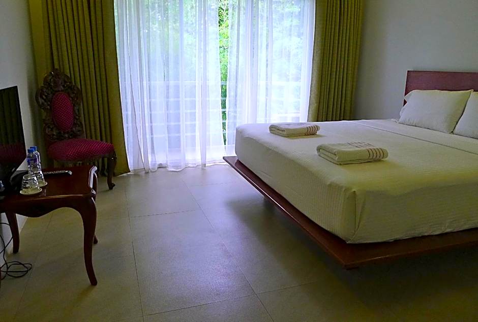 Larger air-conditioned room with a double bed features a balcony with garden views and flat-screen cable TV. Private bathroom comes with a hot and cold shower, toilet and free toiletries.